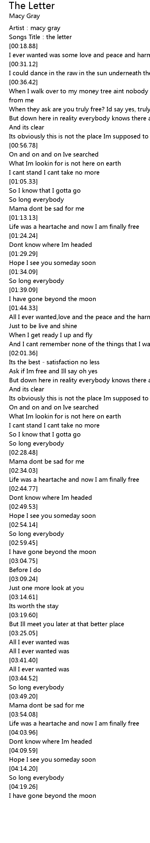 | [01:47.95] | All I ever wanted, love and the peace and the harmony |