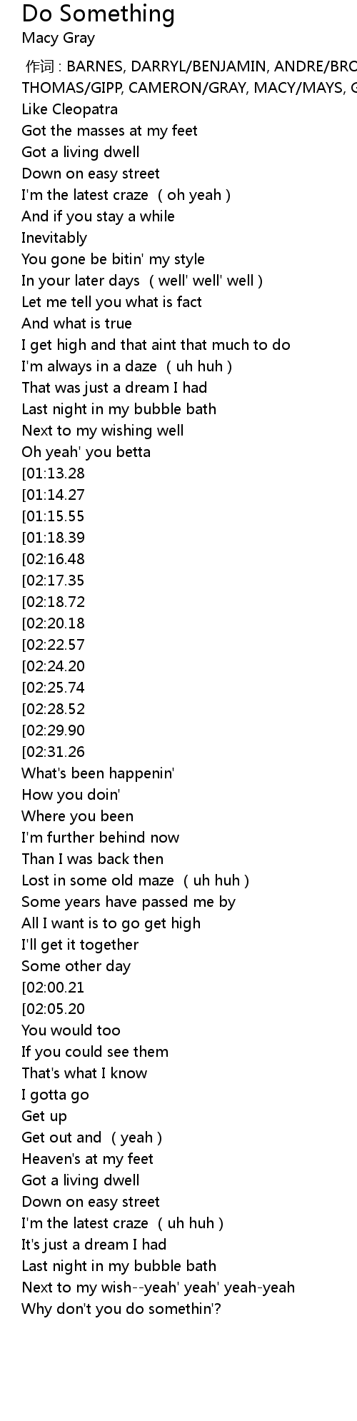 | [04:05.53][02:22.57][01:25.90] | And do somethin' |