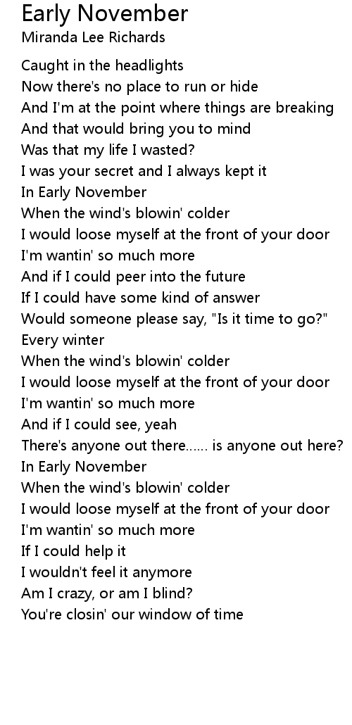 | Song | Early November |