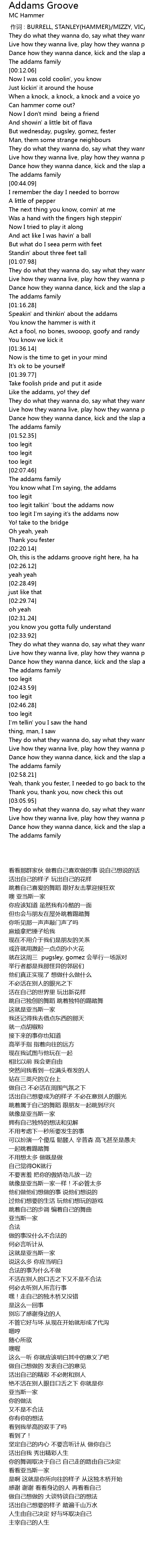 | [02:16.45] | too legit I' m saying it' s the addams now |