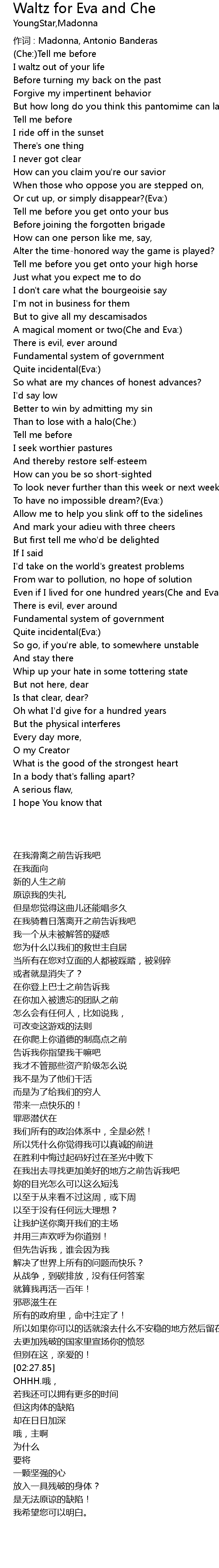 | Even if I lived for one hundred years(Che and Eva:) | |