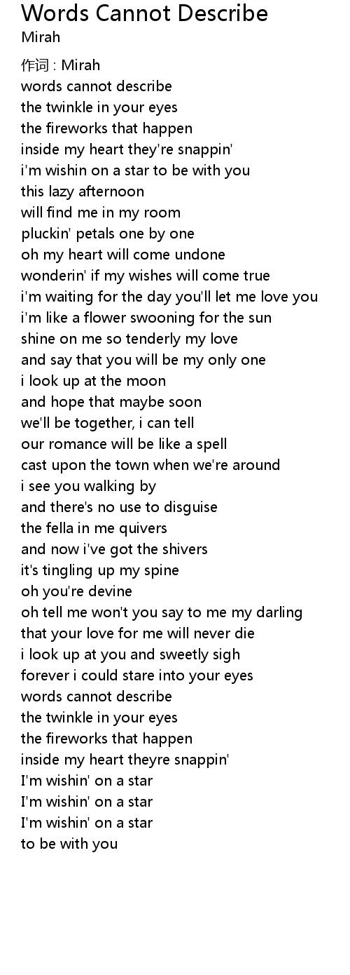 | Song | Words Cannot Describe |