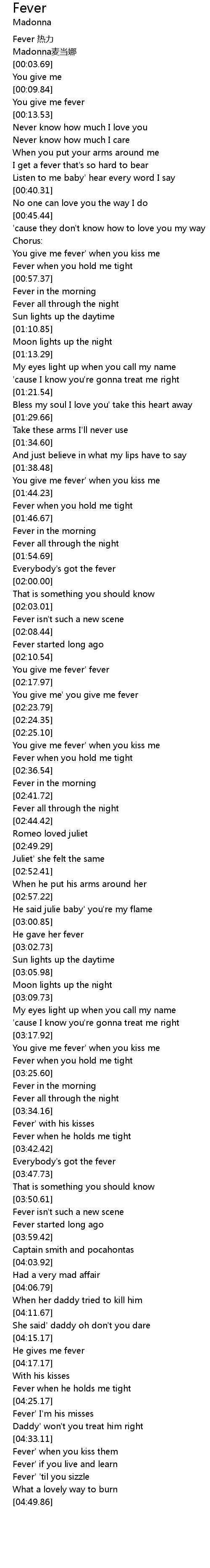 | [00:30.31] | I get a fever that' s so hard to bear |