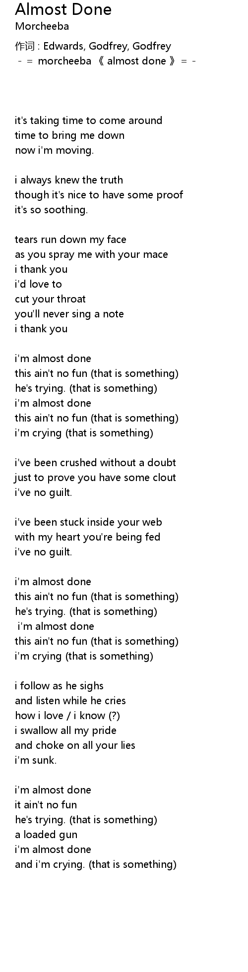 | morcheeba almost done | |
