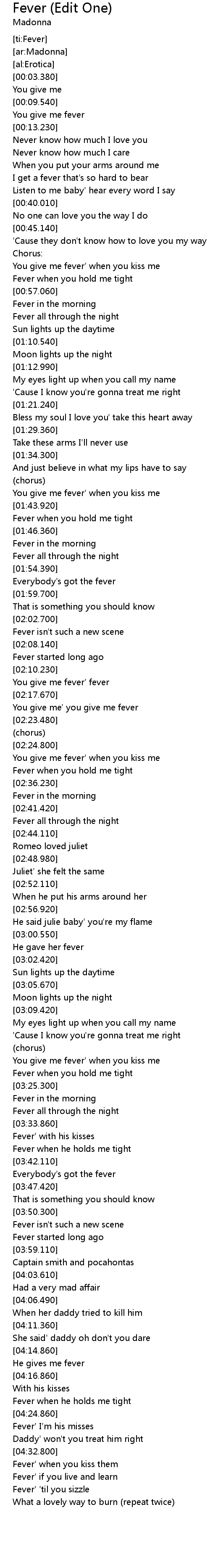 | [03:40.490] | Fever when he holds me tight |