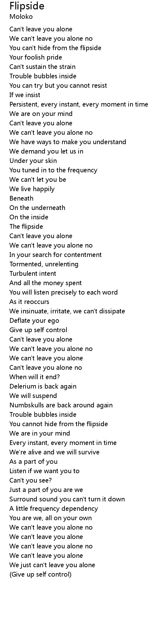 | Can't leave you alone | |