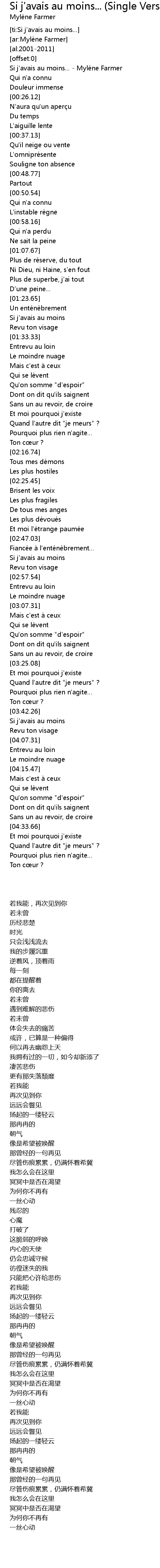 | [00:00.96] | Si j' avais au moins... Mylè ne Farmer |