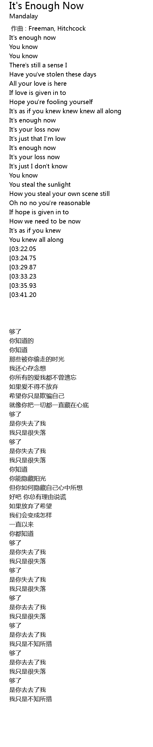 | [04:45.70][03:33.23][03:10.86] | It's enough now |
