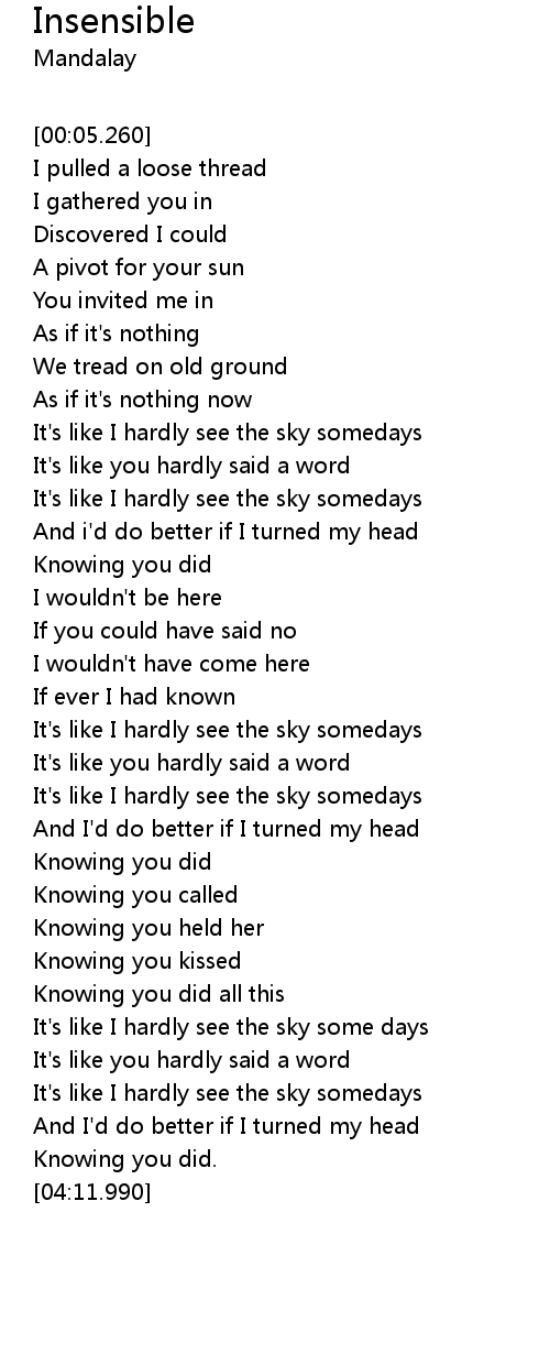 | [03:51.130] | It's like I hardly see the sky somedays |