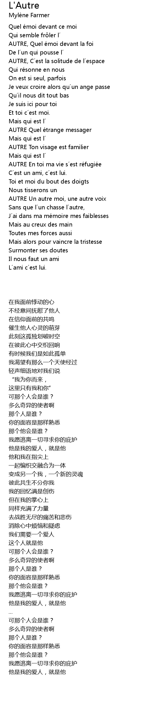 | Song | L'Autre |
