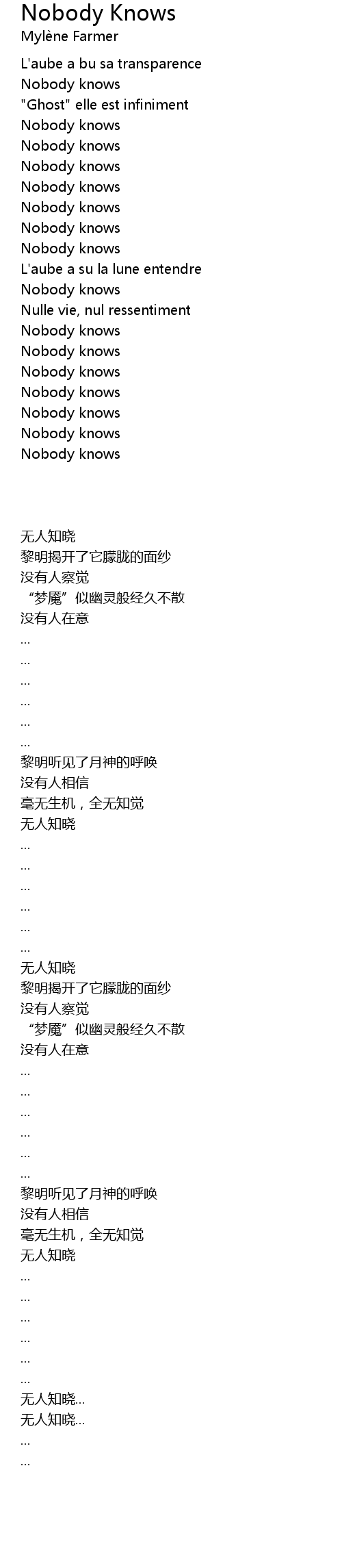 | Song | Nobody Knows |