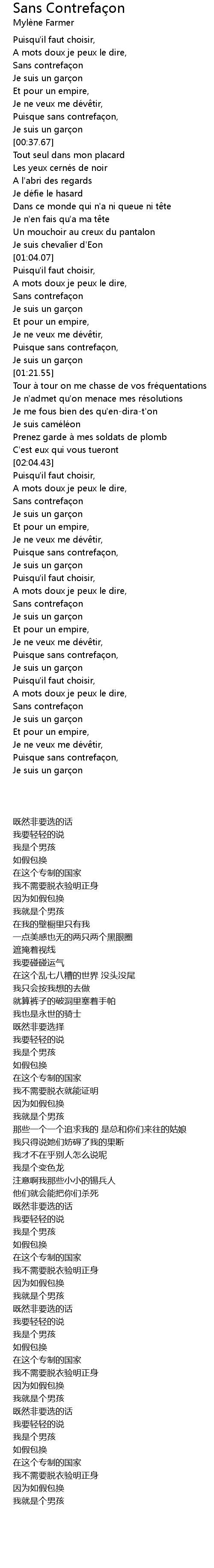 | [02:12.33] | Sans contrefa on |