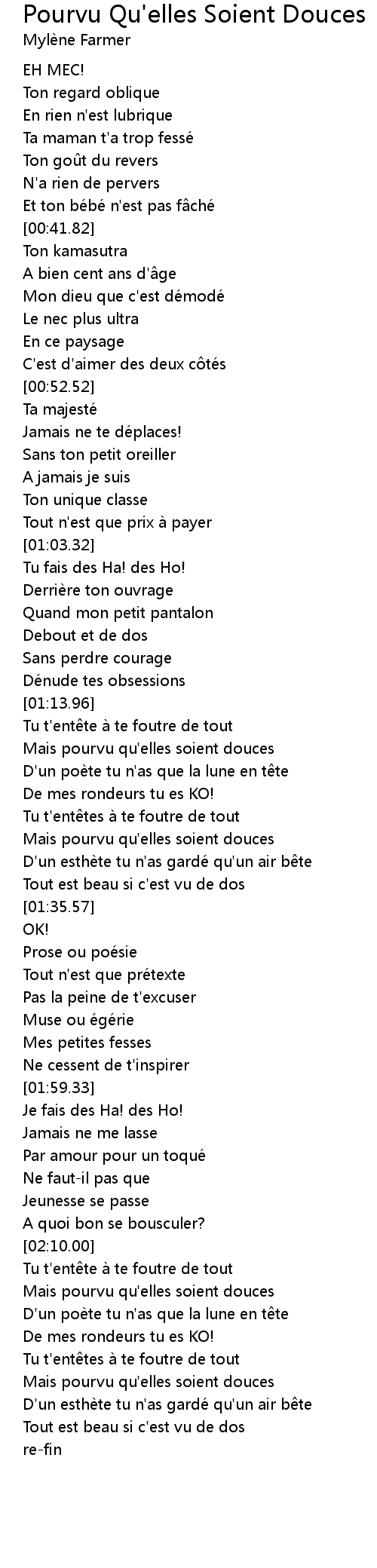 | [02:13.44] | Mais pourvu qu' elles soient douces |