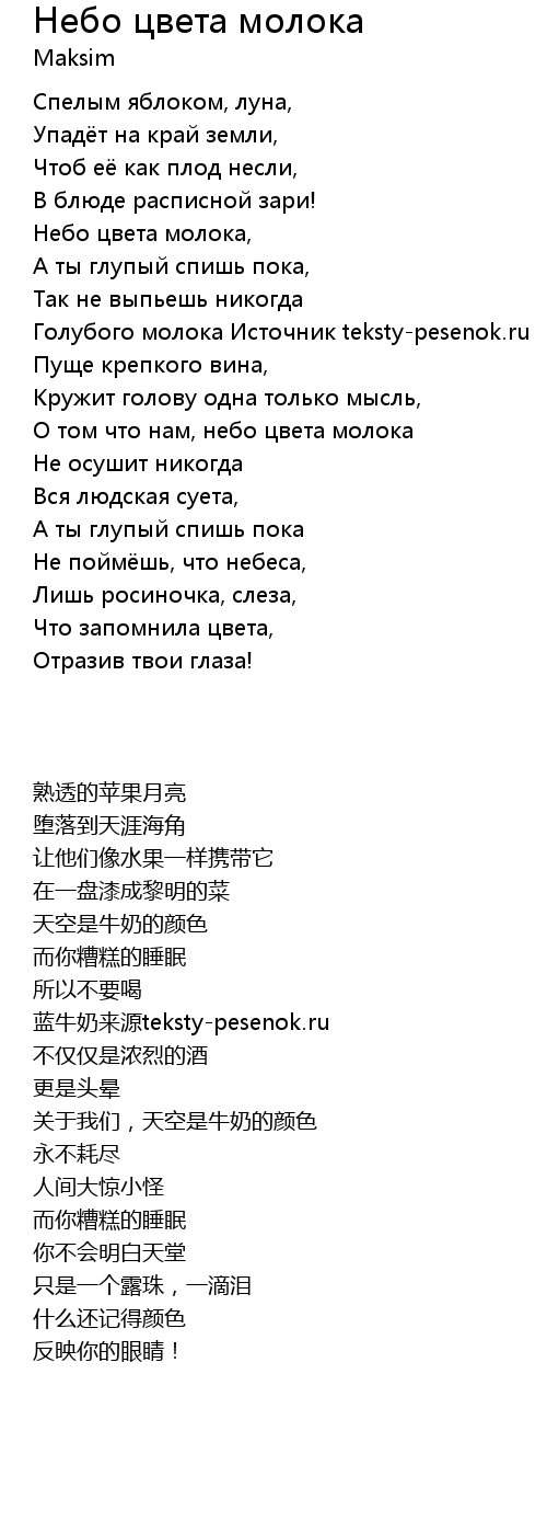 Голубого молока Источник teksty-pesenok.ru |