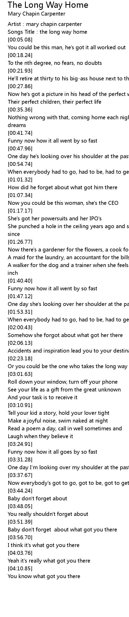 | [02:58.06] | Or you could be the one who takes the long way home |