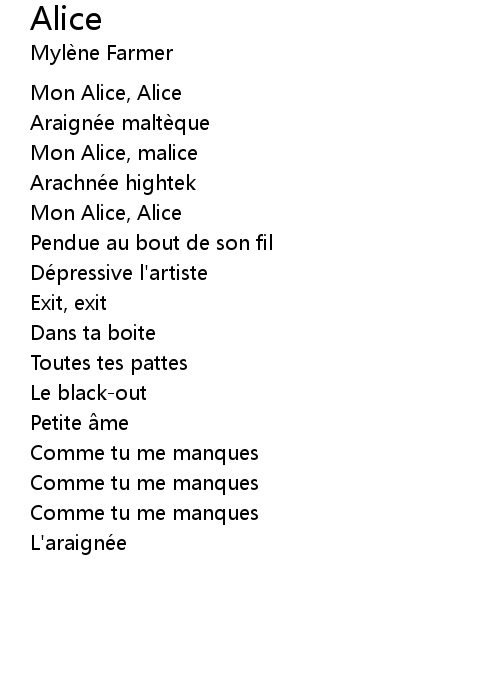| Song | Alice |