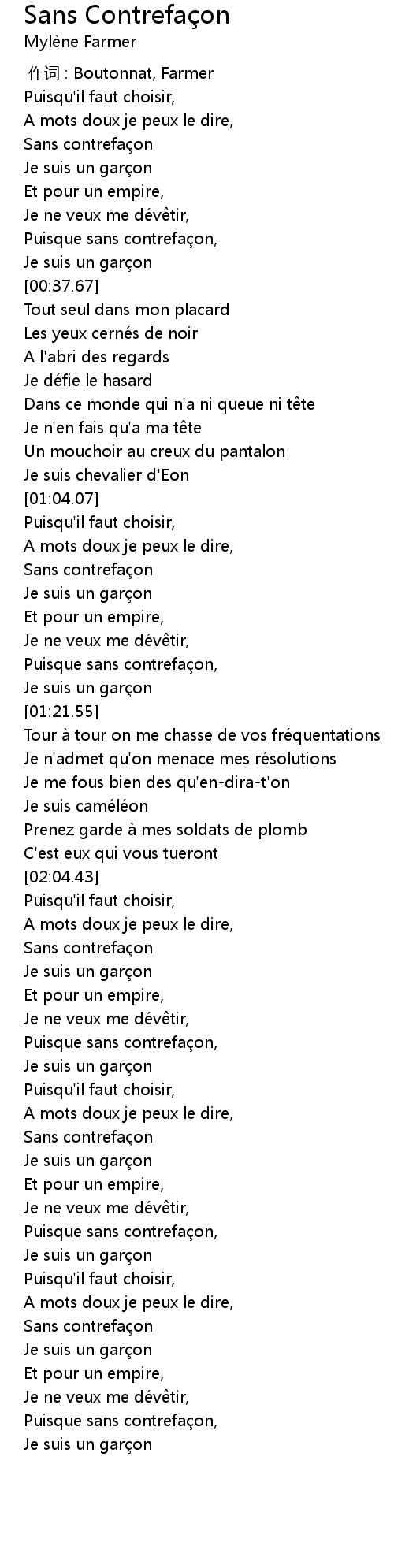 | [00:00.00] | 作词 : Boutonnat, Farmer |