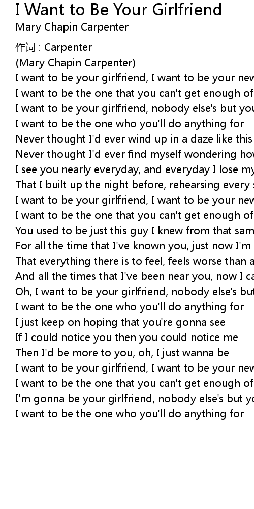 | Oh, I want to be your girlfriend, nobody else's but yours | |