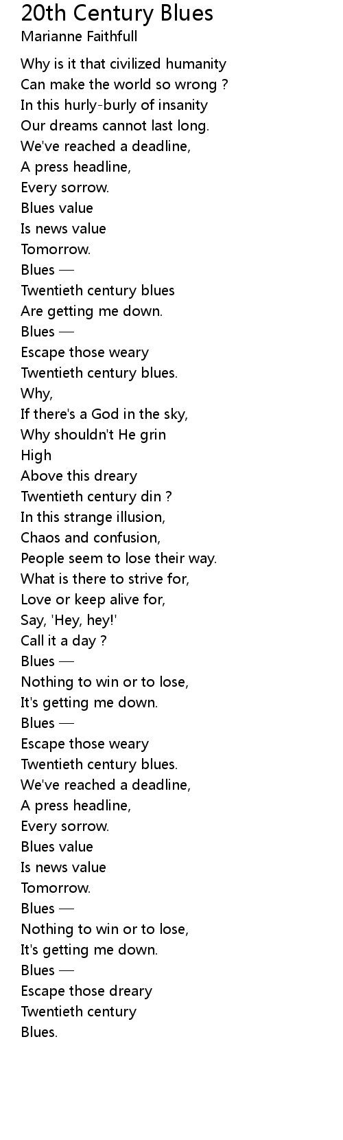 | Twentieth century blues | |
