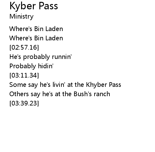 | [02:51.59] | Where's Bin Laden |