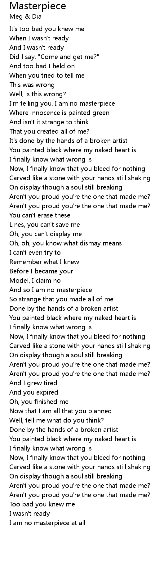 And so I am no masterpiece |