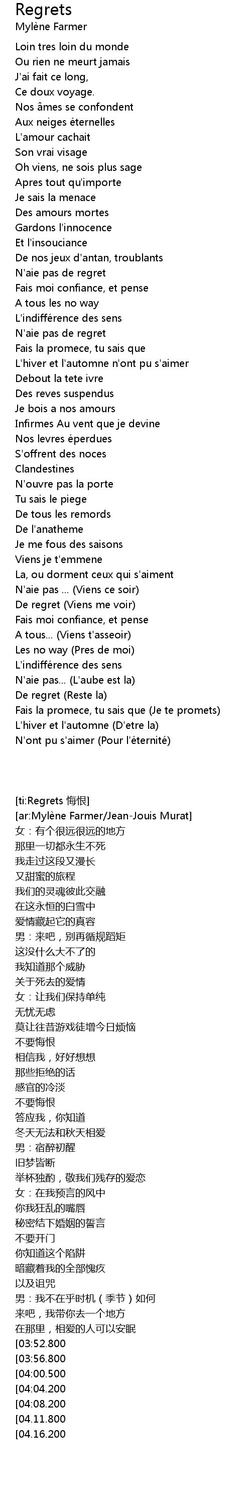 | N'aie pas de regret | |