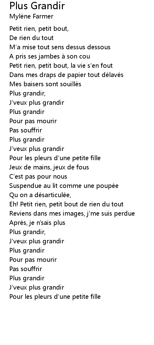 | Song | Plus Grandir |