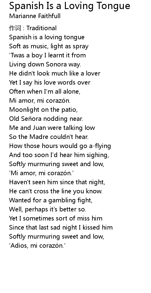 | Spanish is a loving tongue | |