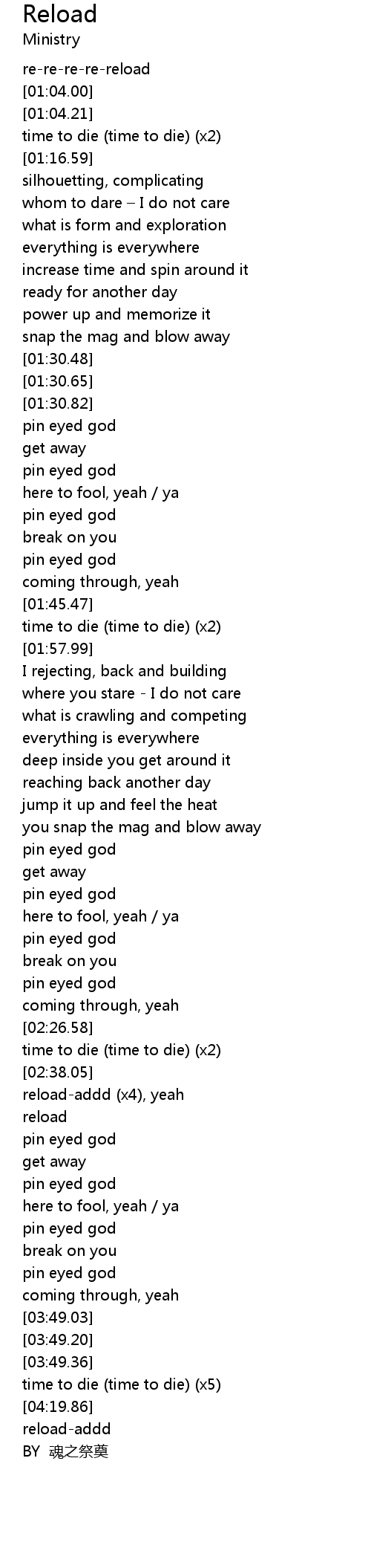 | [03:50.87] | time to die time to die x5 |