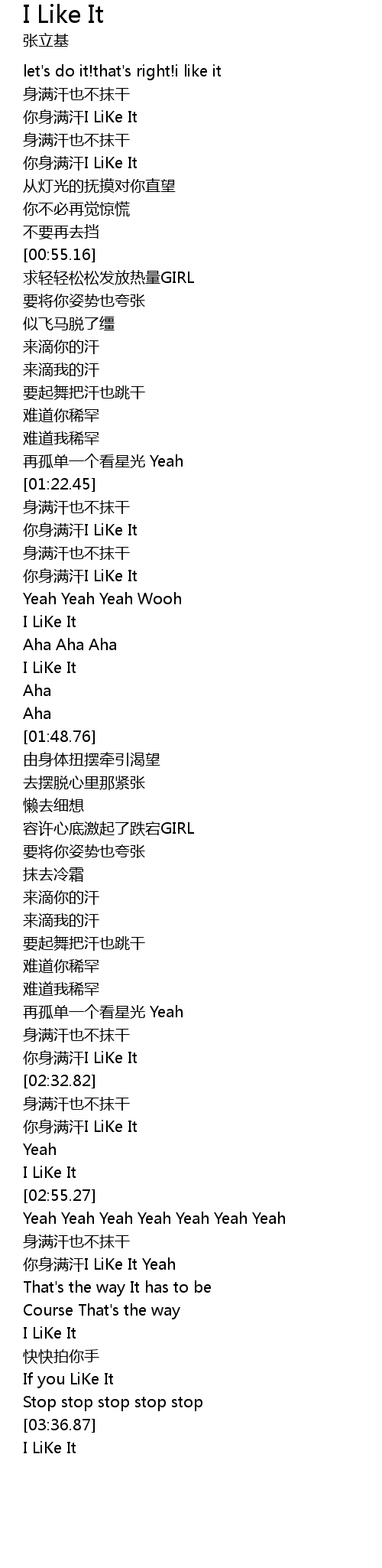 | [00:40.91] | nǐ shēn mǎn hàn I LiKe It |