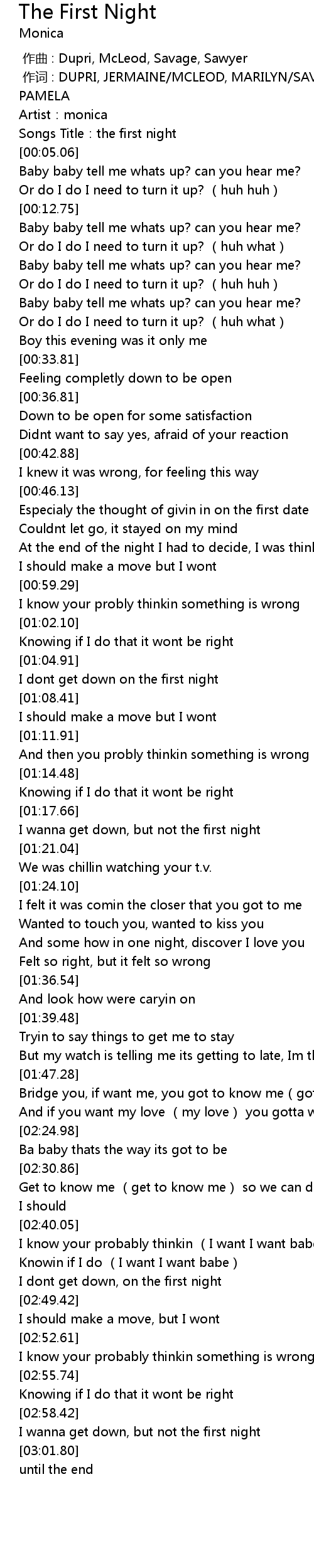 | [02:59.11] | I wanna get down, but not the first night |