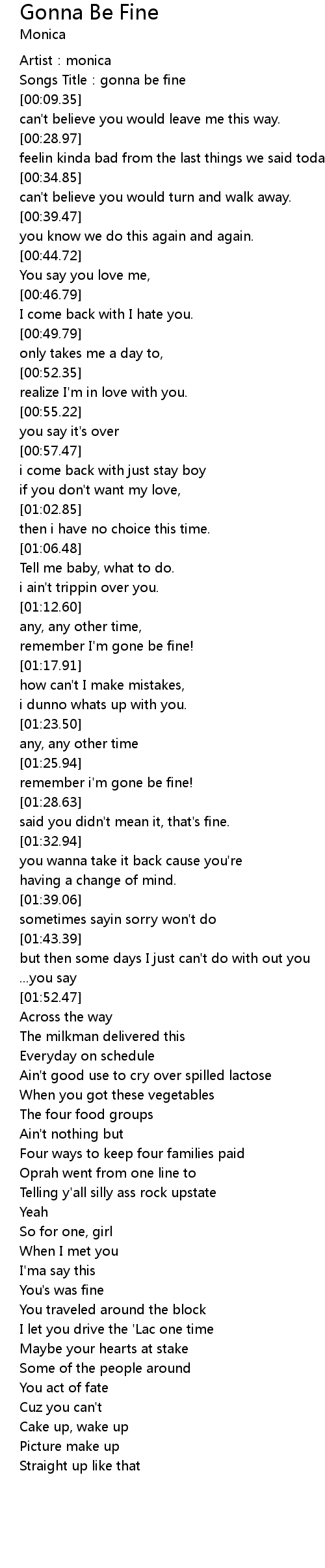 | [01:16.10] | remember I'm gone be fine! |
