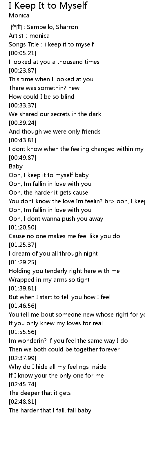 | [00:02.77] | Songs Title:i keep it to myself |