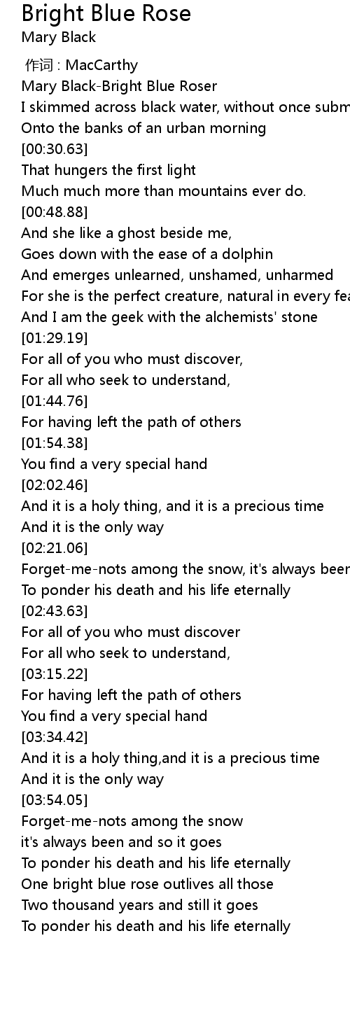 | [00:01.12] | Mary BlackBright Blue Roser |