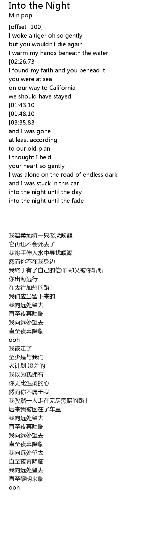 into the night until the day |