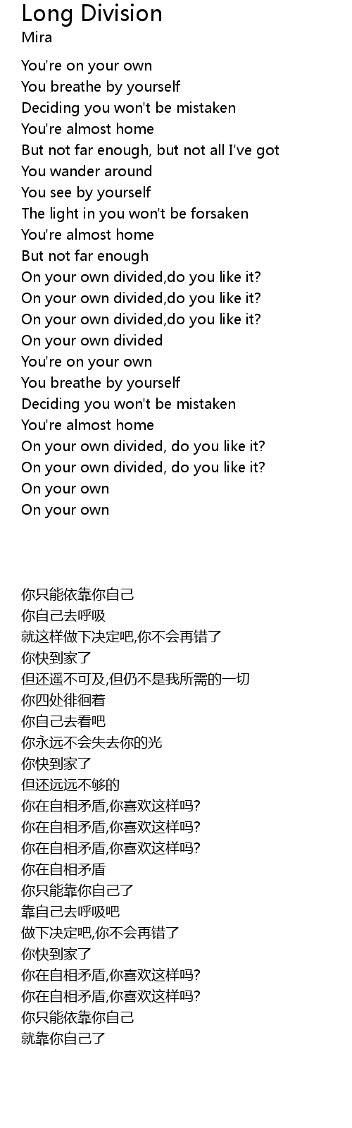 On your own divided |