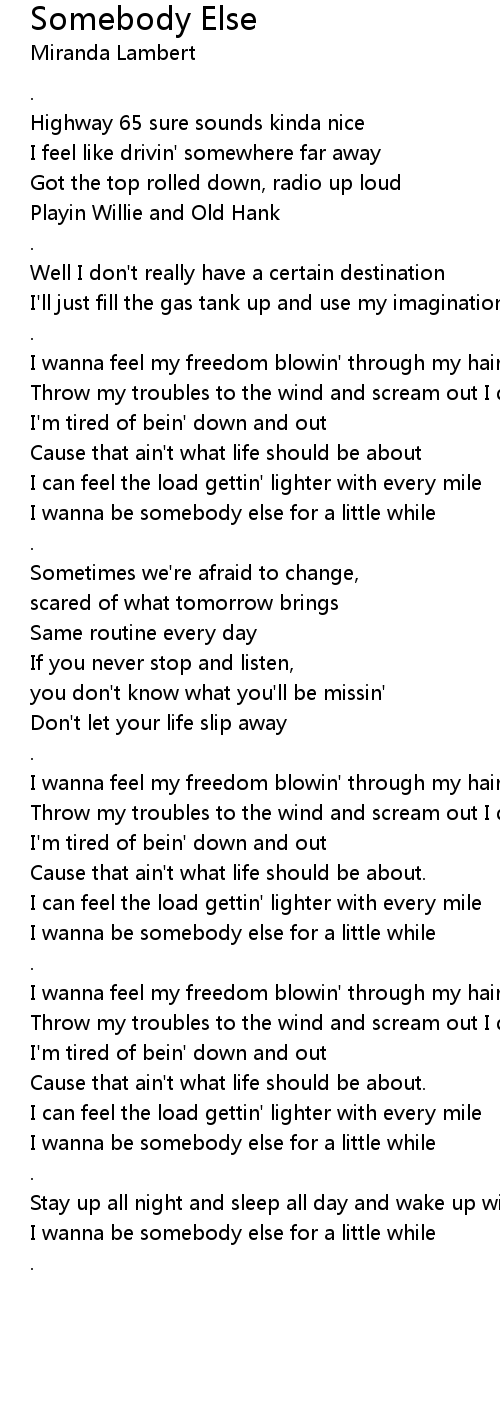 I wanna be somebody else for a little while |