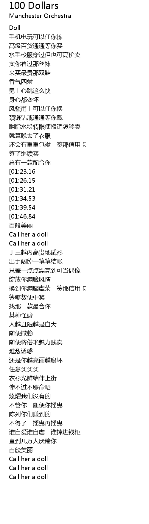 | [02:45.44][01:23.16] | 谁在买谁没有的 |