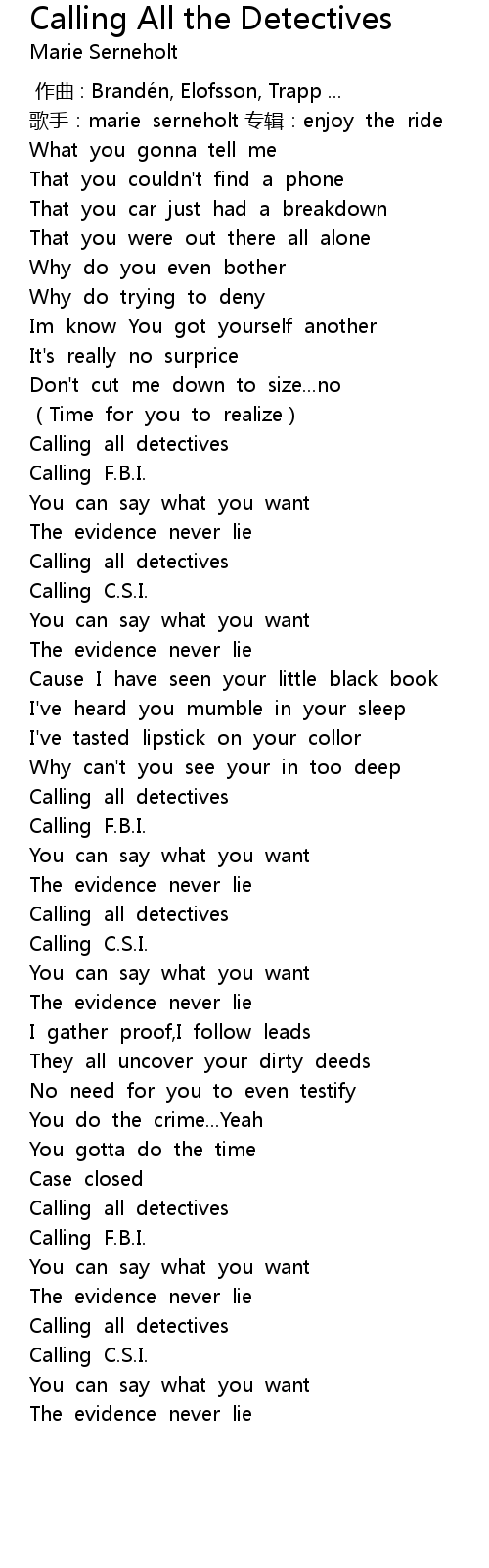 | [00:02.67] | 歌手:marie serneholt 专辑:enjoy the ride |