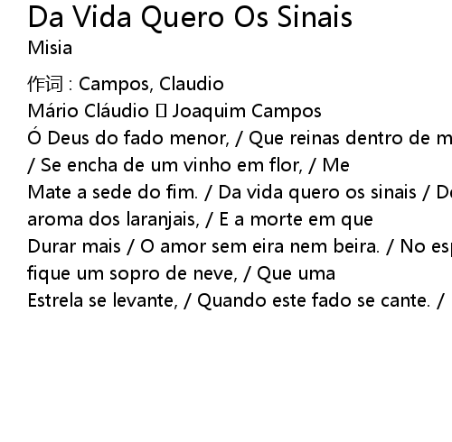 | Ó Deus do fado menor, Que reinas dentro de mim, Faz com que a ta a da dor Se encha de um vinho em flor, Me | |