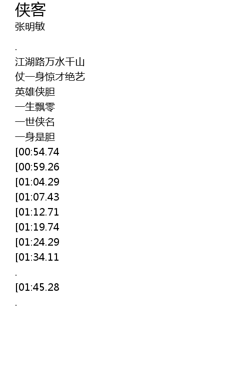 | [02:41.18][01:34.11] | 问此人是谁 天下一侠少 |