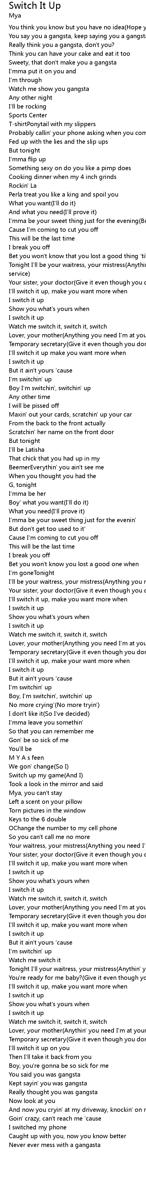 Switch up my game(And I) |