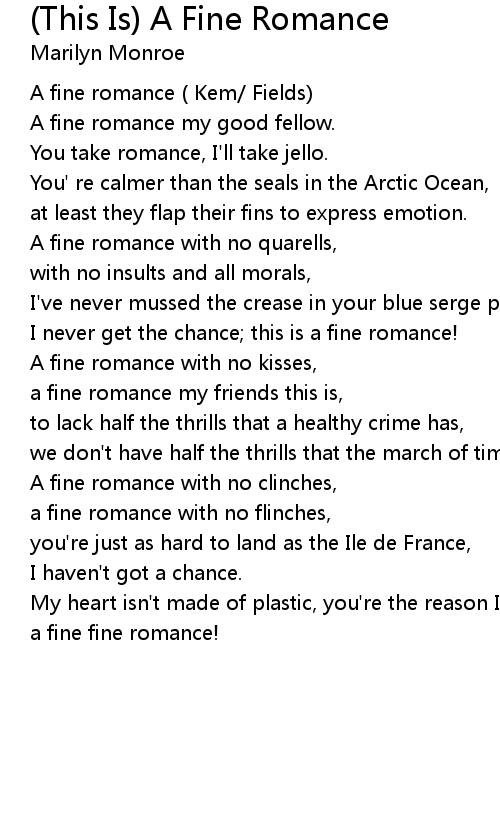 My heart isn't made of plastic, you're the reason I'm sarcastic; 'cause this is a fine fine romance! |