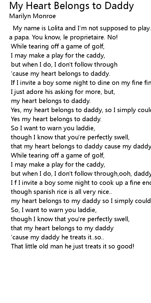 that my heart belongs to my daddy |