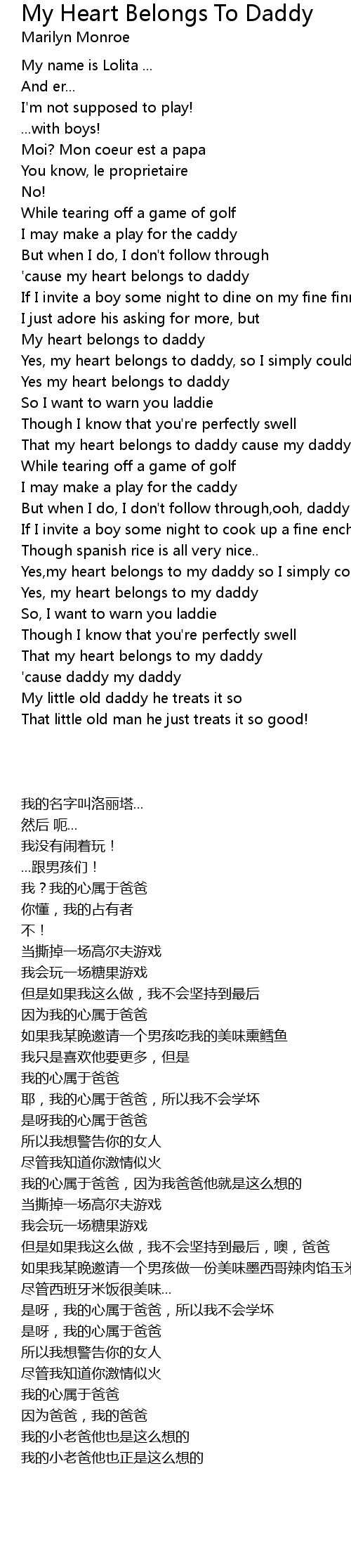 'cause my heart belongs to daddy |