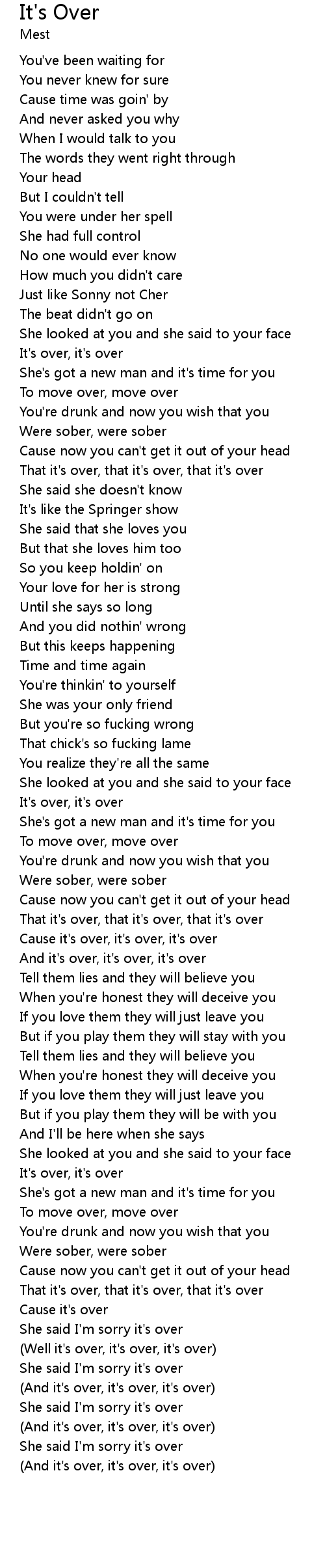 That it's over, that it's over, that it's over |