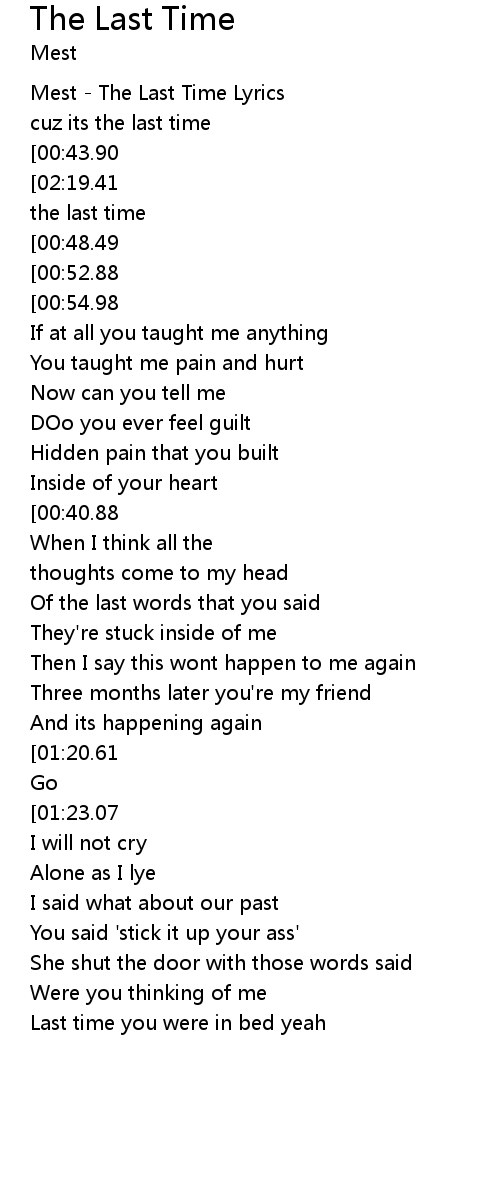 | [00:01.62] | Mest - The Last Time Lyrics |