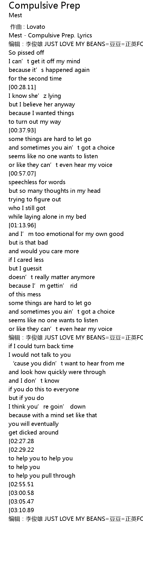 | [00:01.00] | Mest - Compulsive Prep. Lyrics |