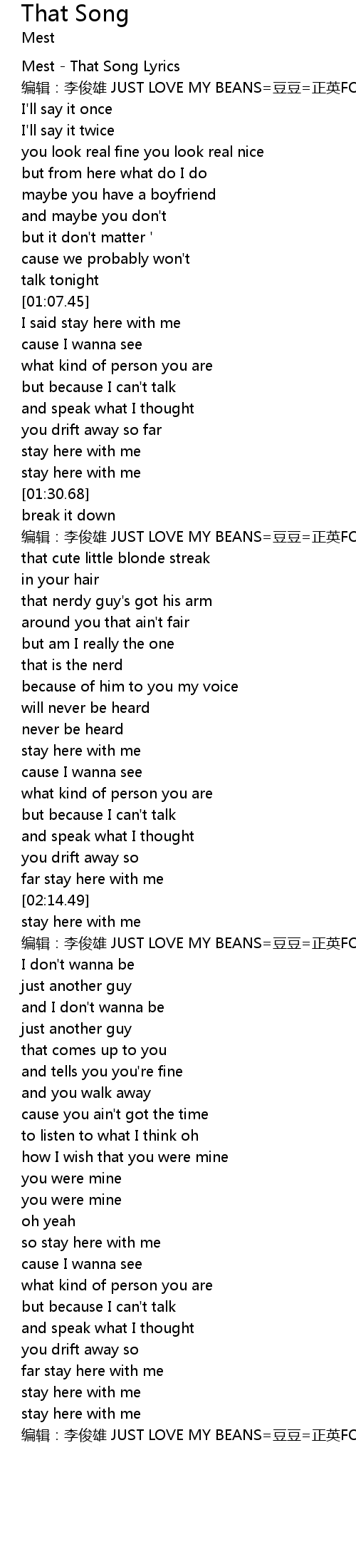 | [00:01.77] | Mest - That Song Lyrics |