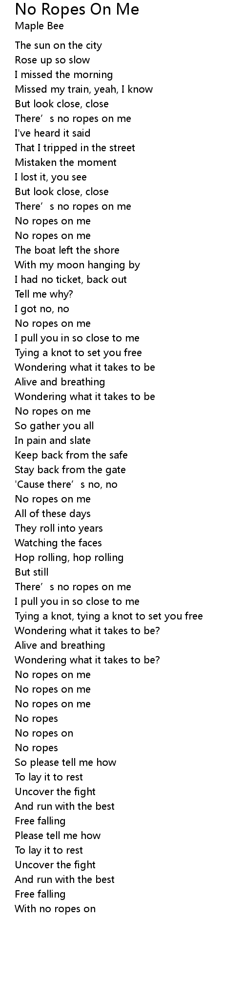 | There' s no ropes on me | |